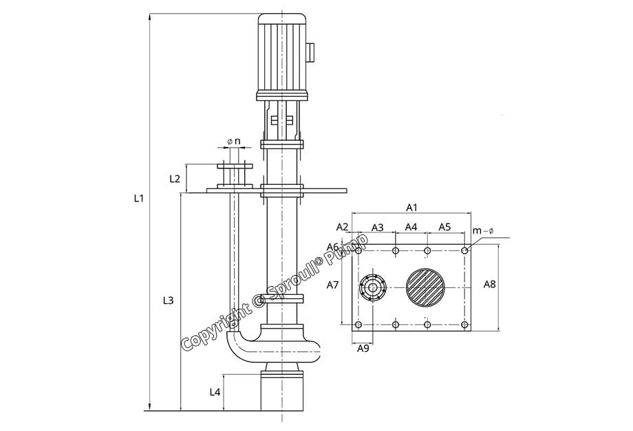 | L1 | L2 | L3 | L4 | Φn | A1 | A2 | A3 | A4 | A5 | A6 | A7 | A8 | A9 | m-Φ1 | outlet flange | ||